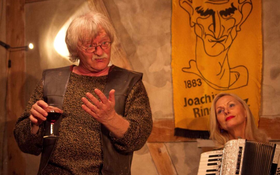 Der Kabarettist Ulf Annel und die Musikerin Verena Fränzel bieten große Kleinkunst mit Texten von Joachim Ringelnatz, dem deutschen Dichter aus dem sächsischen Wurzen, zeitweilig Seemann, Erfinder des Kuttel Daddeldu. Hochkomisch, zartfühlend und mit ein bisschen schwarzem Humor.